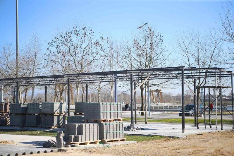 Sakarya Park’ta inşası başlayan yeni lunapark için çalışmalar hızlanırken oyun alanlarının temeli atıldı, kafeterya bölümünün ise demir aksamı montajlandı.