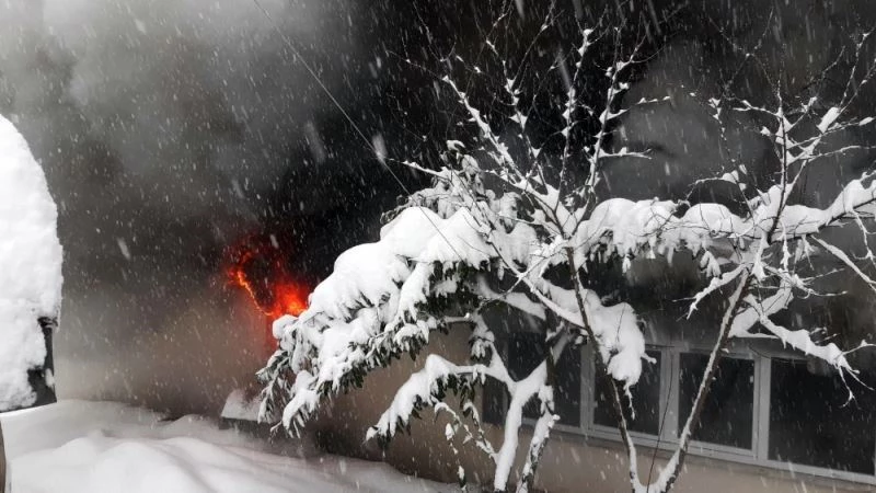Sakarya’nın Karapürçek ilçesinde bir ev alev alev yandı. Karla kaplı yol sebebi ile itfaiye ekipleri yangına güçlükle müdahale edebildi.