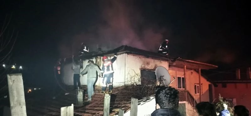 Sakarya’da iki katlı ahşap evin çatı katı alev alev yandı