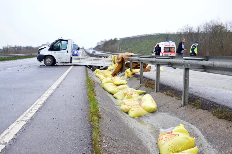 Sakarya’da kamyonet bariyerlere çarptı, gübreler yola saçıldı