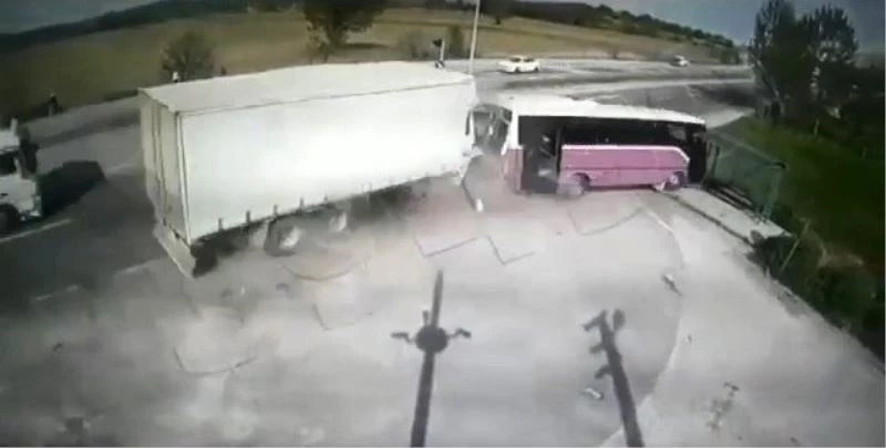Sakarya’da kamyonun yolcu otobüsüne çarptığı feci kaza kamerada