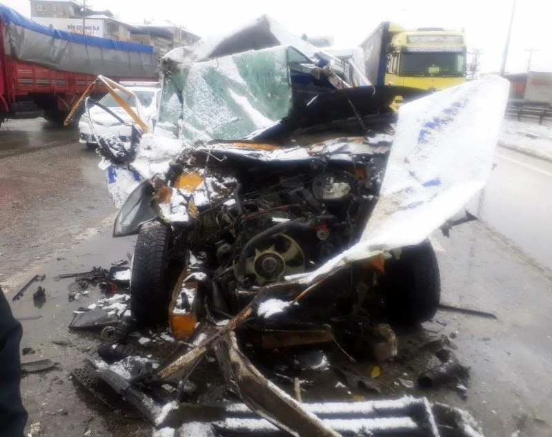 Kaza, D-100 karayolu Serdivan ilçesi Beşköprü Mahallesi mevkiinde meydana geldi. Edinilen bilgiye göre, Kocaeli istikametinde ilerlemekte olan A.S. idaresindeki 54 BN 738 plakalı oto kurtarıcı, kar yağışının da etkisi ile sürücüsünün kontrolünden çıkarak aynı istikamette seyir halinde olan 02 LH 940 plakalı tıra arkadan çarptı. Sürücü A.S., çarpışmanın etkisi ile adeta hurdaya dönen oto kurtarıcı içerisinde sıkıştı. Kazanın bildirilmesi üzerine bölgeye itfaiye, polis ve sağlık ekipleri sevk edildi.