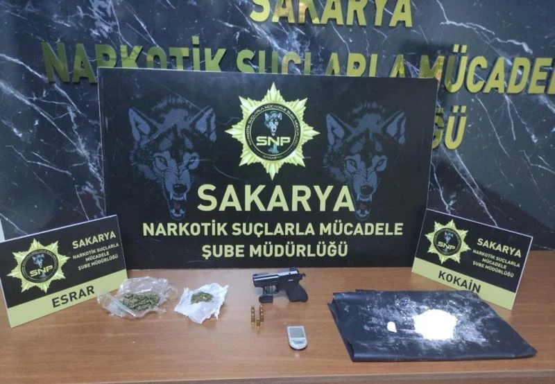 Sakarya’da polis ekipleri uyuşturucuya geçit vermiyor. Sakarya Emniyet Müdürlüğü Narkotik Suçlarla Mücadele Şube Müdürlüğü ekiplerince sokak satıcılarına yönelik Serdivan ilçesinde operasyon düzenlendi. İstanbul’dan getirdikleri uyuşturucu maddeleri Sakarya’da satacakları tespit edilen 2 şüpheli narkotik ekiplerince takibe alındı. Şüphelilerin aracında yapılan aramalarda 1 ruhsatsız tabanca ve 7 adet çapında fişek ele geçirilirken, ikametlerinde ise; 13,43 gram esrar, 5 gram taş kokain ve 89 gram toz kokain ile 1 adet hassas terazi ele geçirildi.
