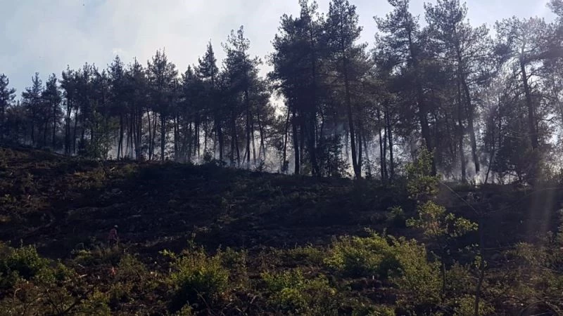 Yangın söndürme helikopterinin de müdahale ettiği yangın, ekiplerin yoğun çabası sonucu kısmen kontrol altına alındı. Soğutma çalışmalarının sürdüğü bölgede yangın söndürme helikopteri de havadan çalışmalara destek veriyor.