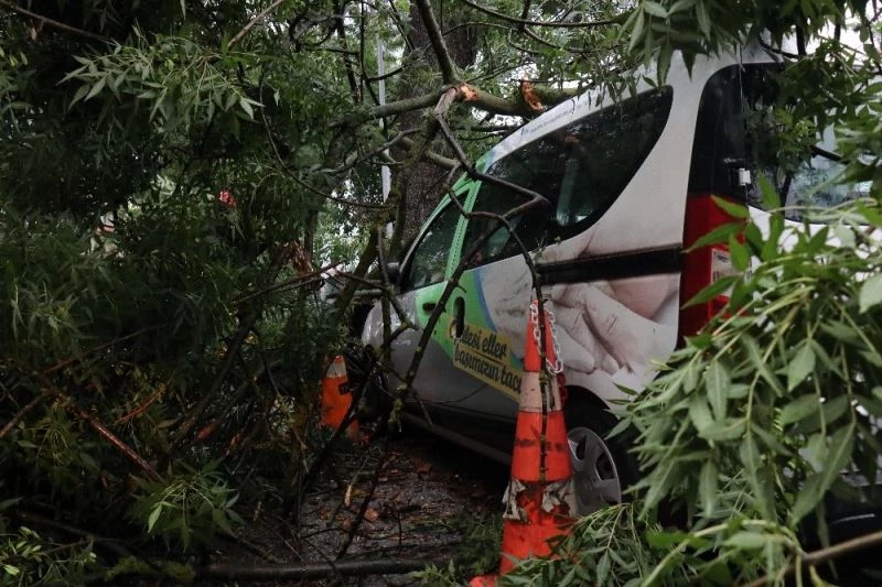 Sakarya’da akşam saatlerinde başlayan yağmur hayatı olumsuz etkiledi. Yağmurun şiddetini arttırması sonucu Mithatpaşa Mahallesi Kent Park içerisinde bulunan Yaşlı Destek Merkezi (YADEM) önünde bir ağaç yerinden koparak park halinde bulunan ve YADEM’e ait 54 DM 759 plakalı aracın üzerine devrildi. Arabanın üzerine devrilen ağacı gören vatandaş durumu itfaiye ekiplerine haber verdi. Durumun haber verilmesi üzerine olay yerine gelen Sakarya Büyükşehir Belediyesine bağlı itfaiye ekipleri uzun uğraşlar sonucu yola ve aracın üzerine devrilen ağacı kaldırdı. Araçta maddi hasar gelirken ağaç düşen bölgeden kimsenin geçmemesi ise olası bir faciayı engelledi.