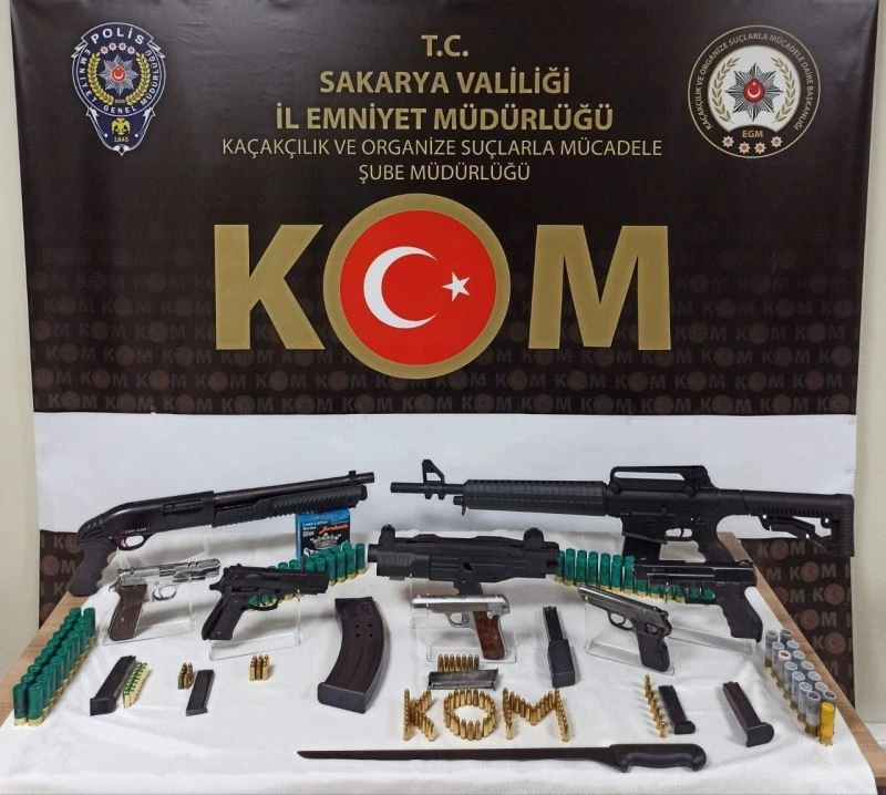 Sakarya İl Emniyet Müdürlüğü Kaçakçılık ve Organize Suçlarla Mücadele Şube Müdürlüğüne bağlı ekipler Karasu’da yasa dışı silah ticareti yapıldığını tespit etti. Tespit üzerine harekete geçen ekiplerce, silah ticareti yapanlara yönelik operasyon gerçekleştirildi. Bir ev ve iş yerine yapılan operasyon neticesinde; 4 adet ruhsatsız tabanca, 1 adet kurusıkı tabanca, 2 adet av tüfeği, 1 adet bıçak, 8 adet şarjör, 110 adet farklı çaplarda tabanca fişeği ile 86 adet dolu kartuş ele geçirildi. Operasyonda gözaltına alınan 3 şüphelinin işlemlerinin sürdüğü öğrenildi.