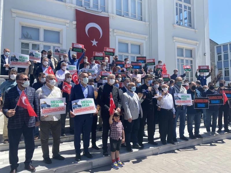 Sakaryalı STK’lar şehir merkezinde düzenledikleri basın açıklamasında İsrail’e lanet yağdırdı. Sakarya Büyükşehir Belediye Başkanı Ekrem Yüce, “İsrail ilk kıblemize saldıracak kadar onursuz davranıyor. İnsan hakları görevini neden yapmıyor? Dünyanın her yerindeki Müslümanlar bizim kardeşimizdir, derdi derdimizdir” dedi.