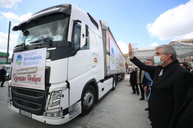 Sakarya Büyükşehir Belediyesi’nin organizasyonuyla hazırlanan 1 tır dolusu gıda malzemesi kardeş şehir ilişkileri kurulan Şırnak’a ulaştırılmak üzere yola çıktı.