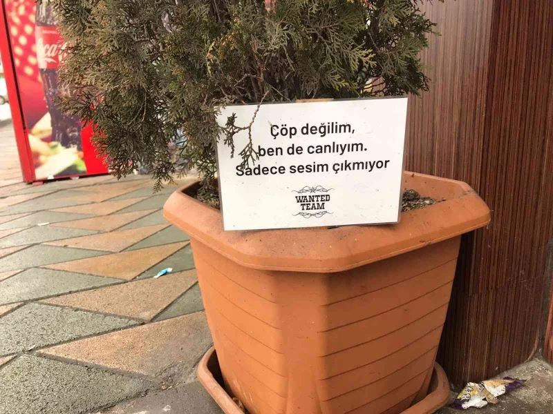 Eskişehir’de bir kafe, dükkanın önünde yer alan çiçek ve ağaç diplerine sigara izmaritlerinin söndürülmesinden dolayı saksılara ‘Çöp değilim, ben de canlıyım. Sadece sesim çıkmıyor’ yazılı önlem alarak çevre kirliliğine dikkat çekti.