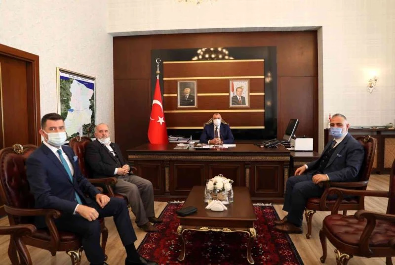 Sakarya Valisi Çetin Oktay Kaldırım, Sakarya Kültür ve Sosyal Yardımlaşma Vakfı Yönetim Kurulu Başkanı Recep Hacıeyüpoğlu ve Yönetim Kurulu Üyeleri Mehmet Ersöz ile Mustafa Serdar Duran’ı makamında kabul etti. Vali Kaldırım’a, SAKVA’nın kuruluşundan bugüne kadar gerçekleştirdikleri çalışmalar hakkında detaylı bilgiler veren Başkan Hacıeyüpoğlu, hayata geçirecekleri projelerden de bahsetti.