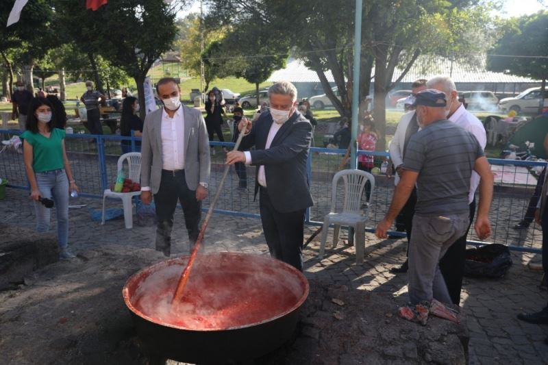 Melikgazi Belediye Başkanı Mustafa Palancıoğlu, Mimarsinan Evliyalar Bölgesi’nde başlayan salça günleri etkinliğine katıldı. Başkan Palancıoğlu salça kaynatan vatandaşları da ziyaret ederek yılın ilk salçasını da kaynattı.