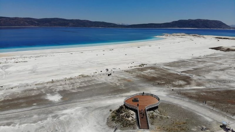 Burdur’un Yeşilova ilçesinde, beyaz kumsalı ve turkuaz rengi suyunun güzelliğiyle ünlenen Salda Gölü’nde ziyaretçiler yoğunluk oluşturdu. Mavi ve yeşilin iç içe olduğu doğal güzelliğiyle de dikkat çeken Salda Gölü, yerli ve yabancı turistlerin ilgi odağı haline geldi. Kurban Bayramı dolayısıyla tatil beldelerine giden ziyaretçiler, Salda Gölü’ne uğrayarak zaman geçirdi. Ziyaretçiler, Göl manzaralı beyaz kumsalıyla birlikte Salda yazısının bulunduğu bölge ile Salda Gölü’nü koruma ve düzenleme çalışmaları kapsamında yenilenen seyir terasında fotoğraf çekilerek anı ölümsüzleştirdi.