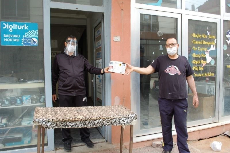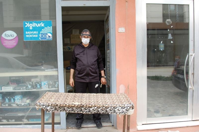 Tekirdağ’ın Malkara ilçesinde televizyon tamircisi, Korona virüs salgınının henüz geçmediğini ifade ederek, sosyal mesafenin korunması için dükkan kapısının girişine masa koydu.