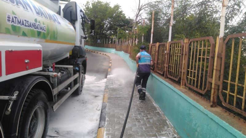 Hürriyet Mahallesi’nde yoğun olarak kullanılan cadde ve sokaklar da ilaçlanarak olası virüs tehdidinin önüne geçildi. Yine vatandaşların yoğun olarak kullandığı 100. Yıl Mahallesi Mumcu Çeşme Caddesi (Eski Tekel Fabrikası üstü) kaldırımları da baştan sona dezenfekte edildi.
