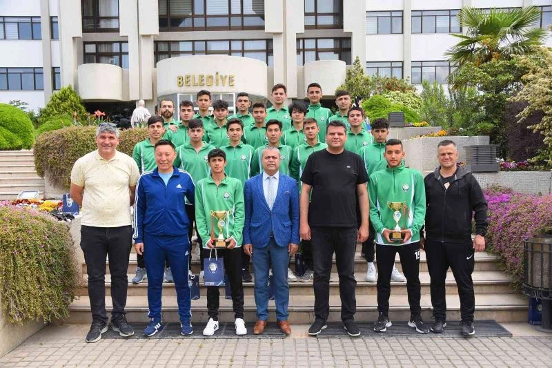 Salihli Belediyesporlu futbolcular, şampiyonluk kupasıyla birlikte Belediye Başkanı Zeki Kayda’yı ziyaret ederek mutluluklarını paylaştı.