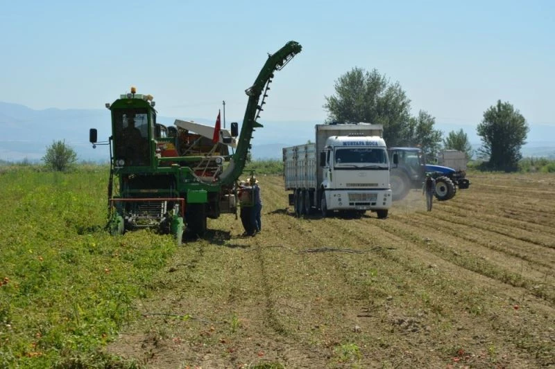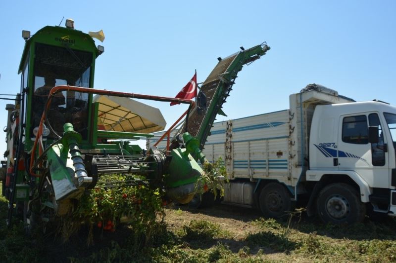 Manisa’nın Salihli ilçesi Çapaklı Mahallesinde salçalık domates hasadı, son teknoloji makineyle toplandı.