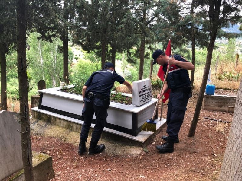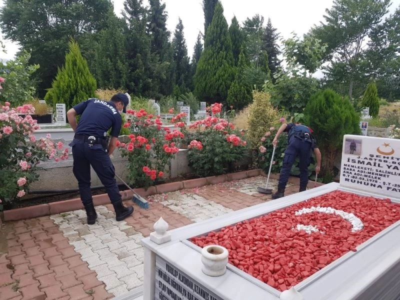 Mezarlara su döken jandarma ekipleri, şehit kabirleri başında dua okudu.