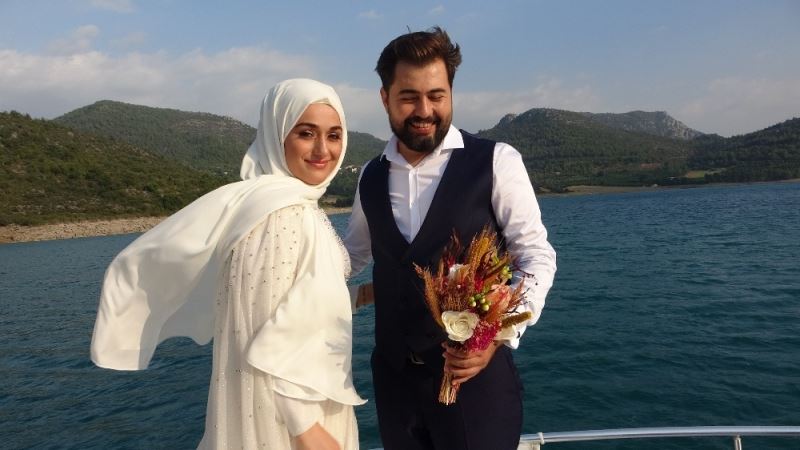 Salondan kaçtılar, baraj gölü ortasında teknede nikah kıydılar