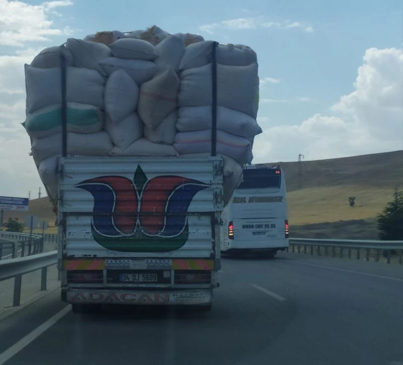 Elazığ’da hasat döneminin ardından yollarda ilerleyen saman yüklü kamyonların tehlikeli yolcuğu, kazalara davetiye çıkartıyor.