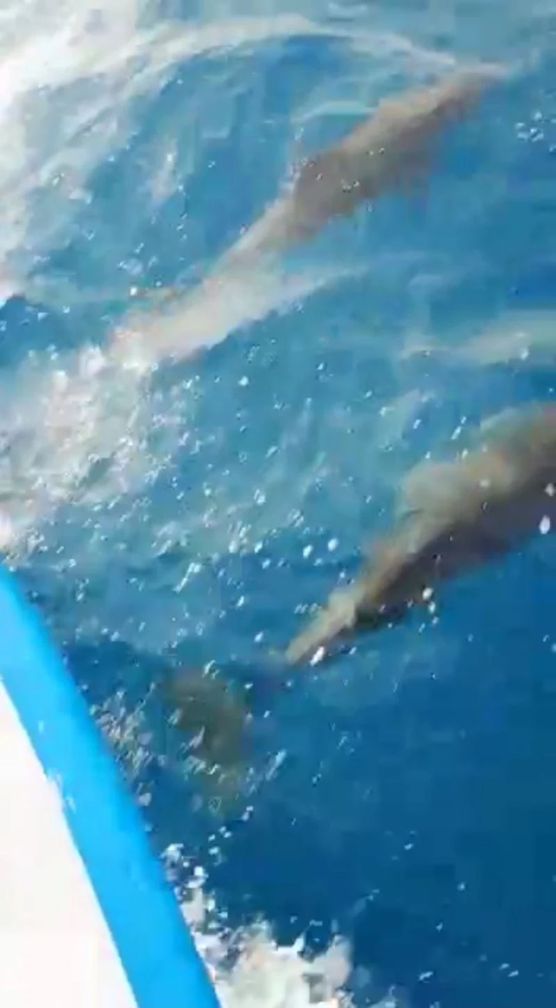 İlçede denize açılan Hatay doğaseverler grubunun gittiği tekne turu teknesine yunuslar eşlik etti. Bir süre tekneyle yarışarak adeta görsel şölen oluşturan yunusların şovunu teknede bulunan grup cep telefonlarıyla kaydetti. Görüntülerde, denize girip çıkan yunusların gösterisini izleyen grubun heyecanla izledi.
