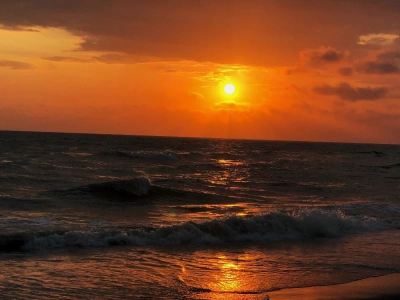 Samandağ sahilinde gün batımıyla birlikte gökyüzü kızıla büründü. Bulutlardan yansıyan güneş ışınları görsel bir şölen oluştururken, gün batımıyla kartpostallık görüntüler ortaya çıktı.