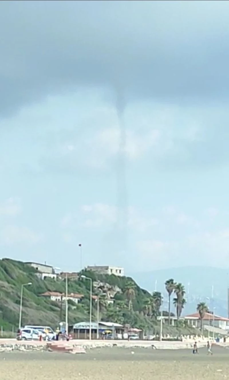 Hatay’ın Samandağ ilçesinde denizde çıkan hortum paniğe neden oldu.