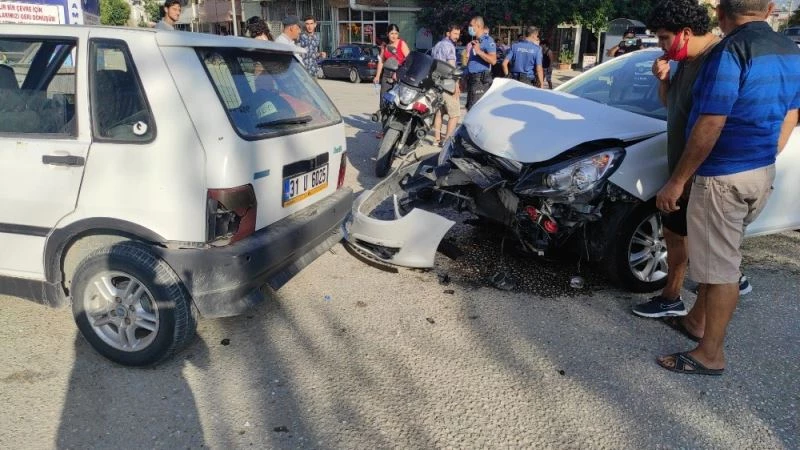 Hatay’ın Samandağ ilçesinde iki otomobilin karıştığı kazada, 1 kişi yaralandı.