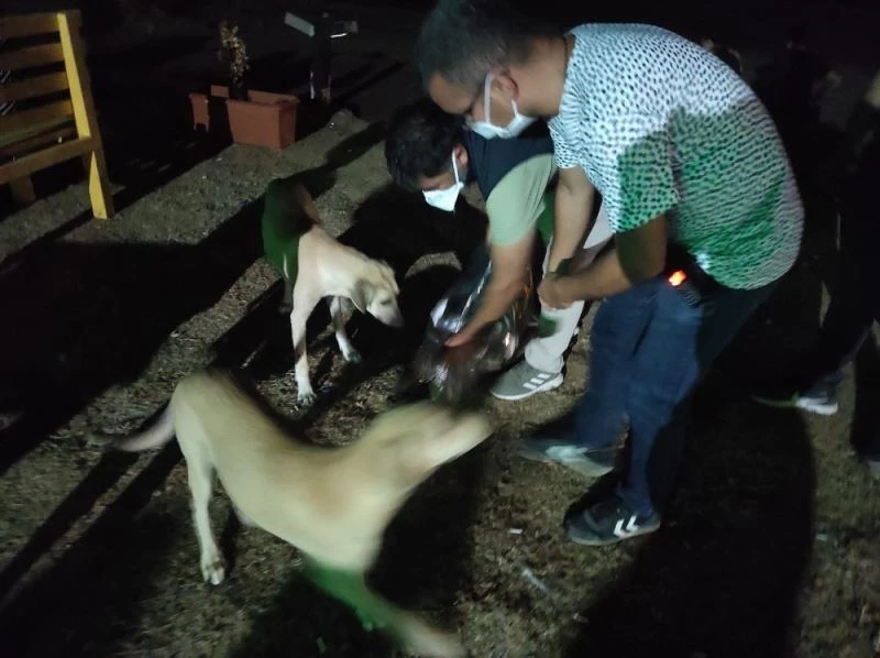 Kent merkezinde bulunan sokak hayvanlarının karınları HAYDİ uygulamasına gelen ihbar ile doydu.