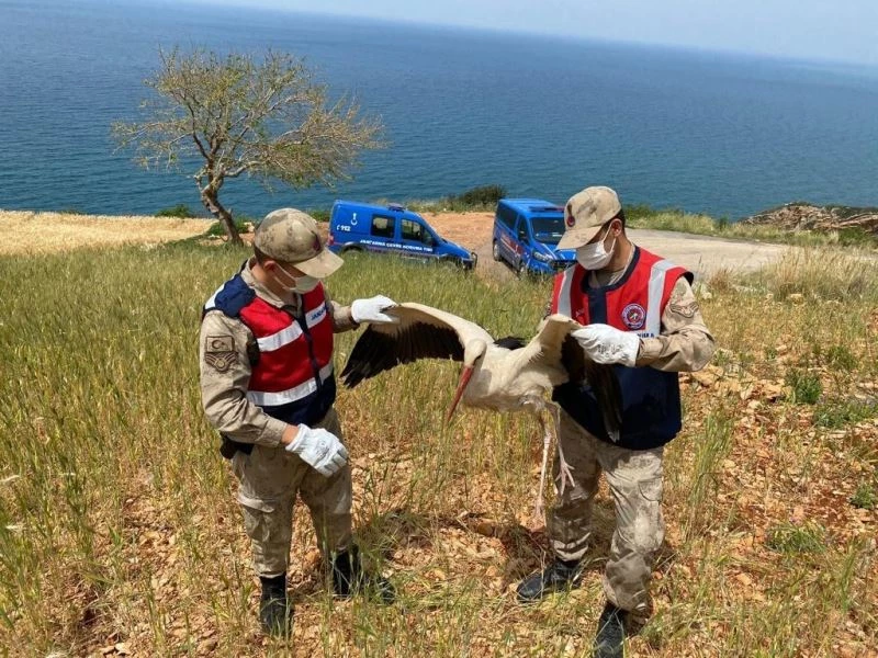 Hatay’ın Samandağ ilçesinde yaralı leylek bulundu.