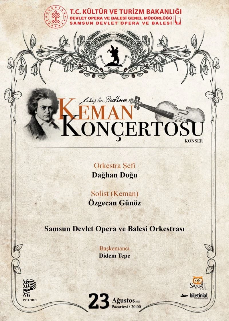 Samsun Devlet Opera ve Balesi(SAMDOB) “Aydın Gün Sahnesi” konserleri 23 Ağustos Pazartesi akşamı saat 20.00’de Beethoven’in Keman Konçertosu op.61 ile başlayacak.