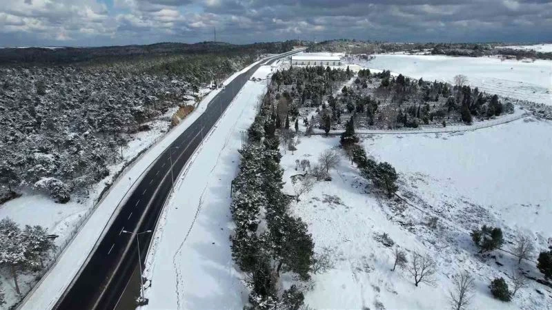 İstanbul’da gece boyunca yağan kar yağışı sonrasında kartpostallık manzaralar ortaya çıktı. Beyaz örtü ile kaplanan Başakşehir’de bulunan Şamlar Tabiat Parkı da havadan görüntülendi.
