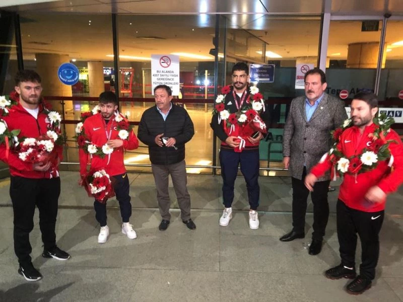 Polonya’da düzenlenen Avrupa Güreş Şampiyonasında ter döken Milli Güreşçiler Avrupa Şampiyonu Taha Akgül, Avrupa Şampiyonu Süleyman Atlı, Avrupa ikincisi Süleyman Karadeniz ve Milli Takım Antrenörü Abdullah Çakmar’ın da bulunduğu kafile Türkiye’ye döndü. Havalimanında büyük bir coşkuyla karşılanan Şampiyon Güreşçilere, Güreş Federasyonu ile ASKİ Spor Kulübü yetkileri çiçek verdi.