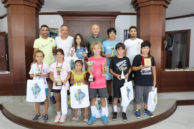 Çeşitli turnuvalarda ödül kazanan Didim Tenis Kulübü’nün minik sporcuları ve antrenörleri, Didim Belediye Başkanı Ahmet Deniz Atabay’ı ziyaret etti. Başkan Atabay, minik sporcuları tebrik ederek hediyeler verdi.