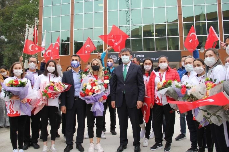 Avrupa Kadınlar Artistik Jimnastik Şampiyonası’nda büyükler kategorisinde ikinci olarak Türkiye’ye ilk madalyasını kazandıran milli sporcu Göksu Üçtaş Şanlı, İzmir’de şampiyon cimnastikçiler tarafından alkışlarla karşılandı. Şanlı, başarıların ekip işi olduğunu söyleyerek, “Madalyamı, Türk kadınlarına ve annelere armağan ediyorum” dedi.