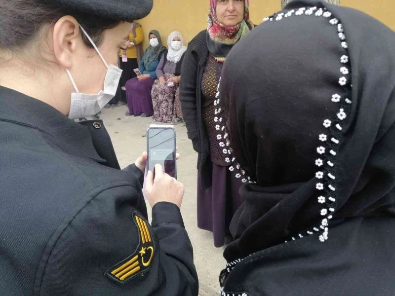 Adıyaman İl Jandarma Komutanlığı ekipleri Samsat ilçesinde KADES uygulamasını kadınlara anlattı.