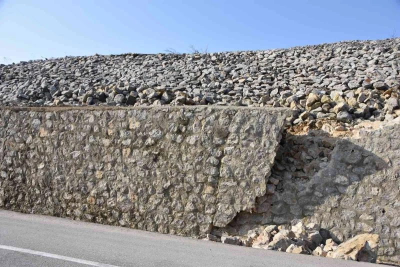 Sinop-Samsun karayolunda istinat duvarının yıkılması nedeniyle ulaşım tek şeritten sağlanıyor. Yaklaşık 100 metre boyunca karayoluna düşen kaya parçaları, beton bariyer duvarla yolun o kısmı ayrılarak yol güvenliği sağlandı.