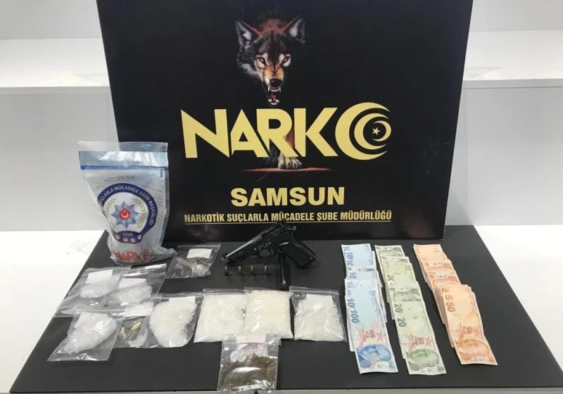 Edinilen bilgiye göre, Samsun Emniyet Müdürlüğü Narkotik Suçlarla Mücadele Şube Müdürlüğü ekipleri A.M. adlı şahsın Atakum ilçesi Esenevler Mahallesi’ndeki bekar evinden irtibatlı olduğu şahıslara uyuşturucu madde satışı yaptığı bilgisi aldı. Narkotik polisi takibe aldıkları A.M.’yi İlkadım ilçesi Hançerli Mahallesi’nde araç içerisinde 88,82 gram metamfetamin maddesi ile birlikte yakalayarak gözaltına aldı. Olayın devamında şüpheli şahsın ikametinde yapılan aramada, 216,87 gram metamfetamin maddesi, 3,41 gram esrar maddesi, 1 adet uyuşturucu içme aparatı, uyuşturucu madde satışından elde edildiği değerlendirilen 2 bin 660 TL para,^1 adet 9 mm çapında tabanca ve 4 adet 9 mm çapında dolu fişek ele geçirdi. "Uyuşturucu madde ticareti yapmak" suçundan gözaltına alınan A.M. çıkarıldığı mahkemece tutuklanarak Samsun T Tipi Kapalı Cezaevine gönderildi.