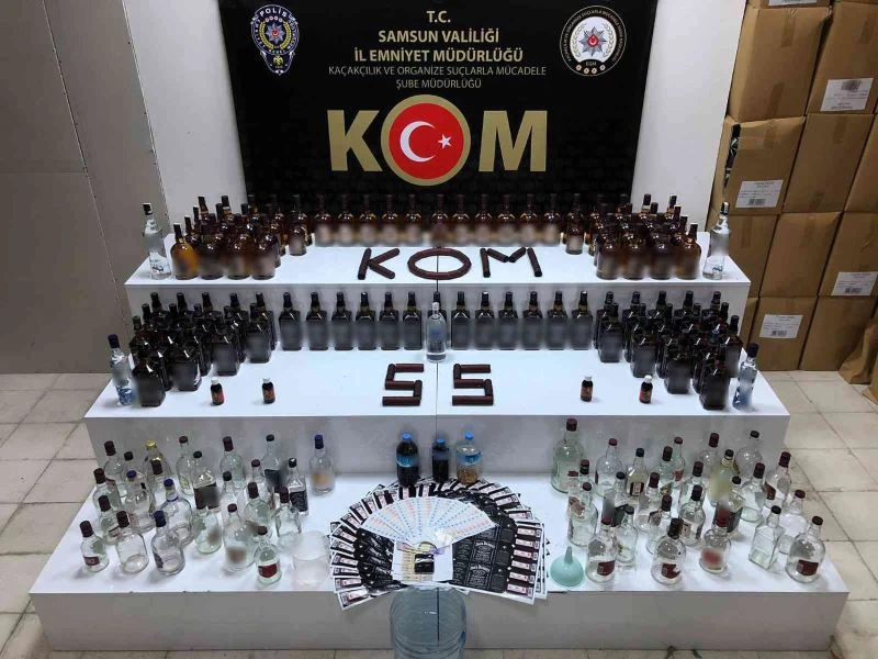 Samsun Emniyet Müdürlüğü Kaçakçılık ve Organize Suçlarla Mücadele (KOM) Şube Müdürlüğü ekipleri 10 adrese yaptıkları operasyonda ’sahte içki’ ile birlikte 2 kişiyi gözaltına aldı.