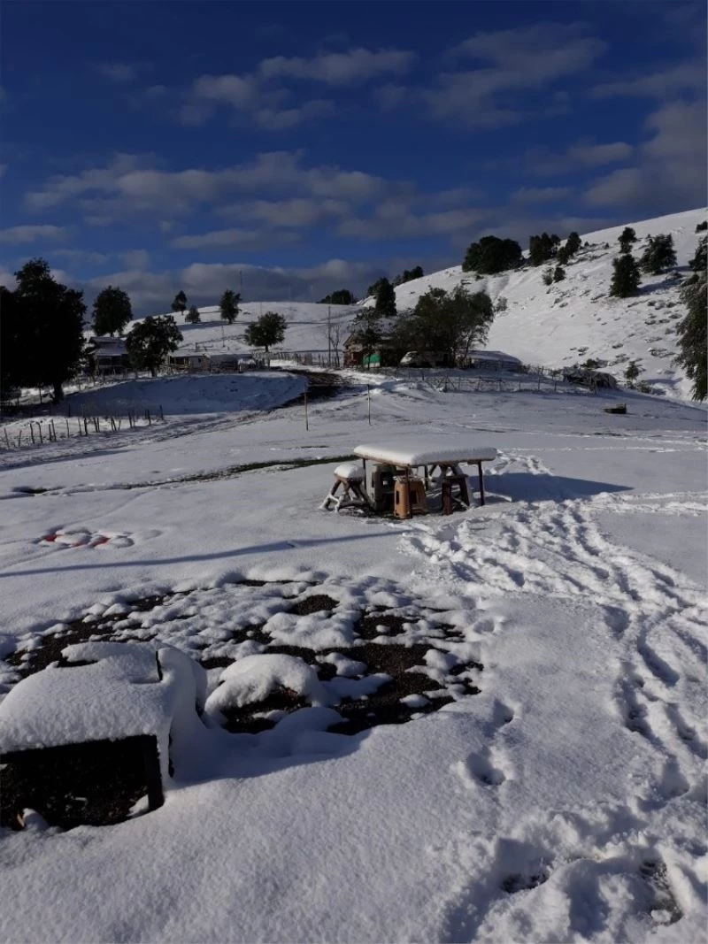 Samsun’un Vezirköprü ilçesi Kunduz Ormanları beyaza büründü. Sabah kalkan yaylacılar kar sürprizi ile karşılaştı.
