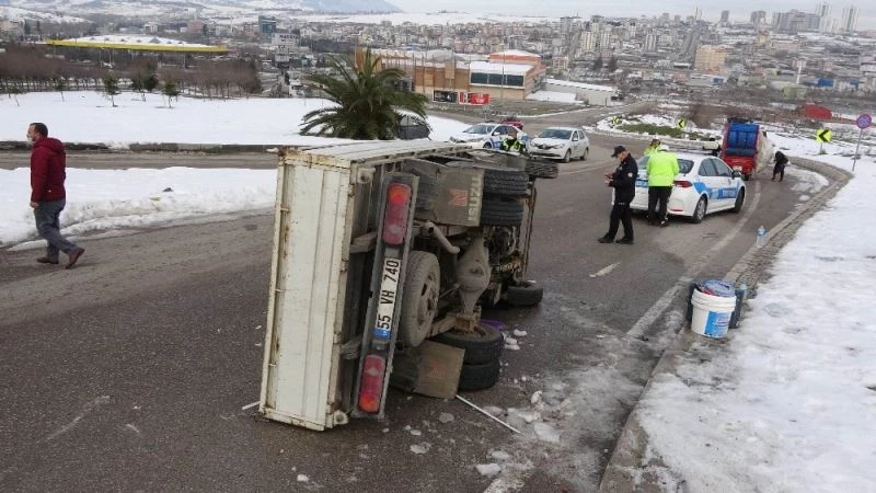Samsun’da kavşakta buzdan kayan kamyonetin devrilmesi sonucu meydana gelen trafik kazasında 3 kişi yaralandı.
