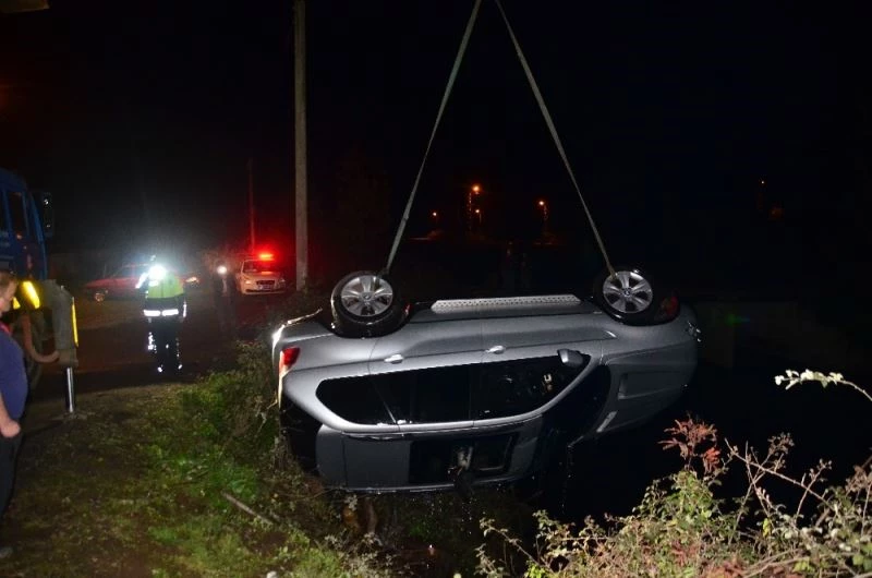 Samsun’da kontrolden çıkan cip, 2 metre derinliğindeki su kanalına devrildi.