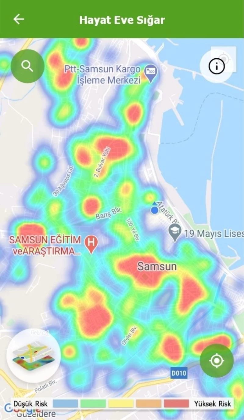 Samsun’da “Hayat Eve Sığar (HES)" uygulaması korona virüsü yoğunluk haritasındaki 1 haftalık değişime bakıldığında ’yüksek risk’ anlamına gelen kırmızı bölgelerin artış gösterdiği dikkat çekiyor.