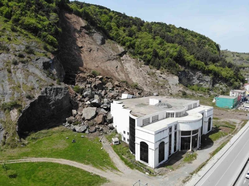 SAMSUN – Samsun’da meydana gelen heyelanda dev kayalar eski düğün salonunun yanına düştü.