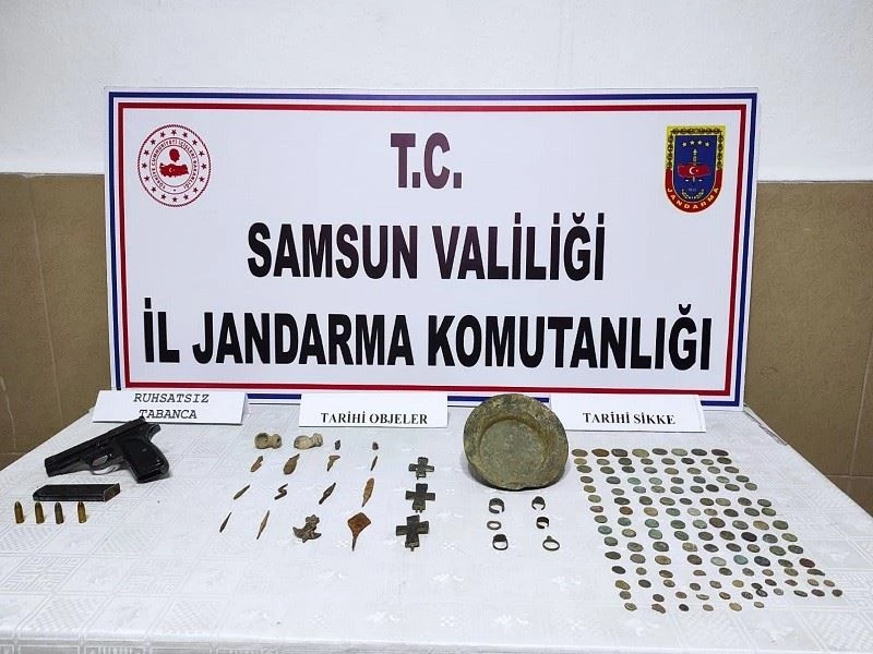 Edinilen bilgiye göre, Samsun Valiliği İl Jandarma Komutanlığı alınan istihbari bilgiler sonucu Havza ilçesinde şüpheli 1 şahsın üst ve aracında arama yaptı. Yapılan aramada 136 adet Roma ve Amisos dönemlerine ait sikke, 26 adet obje ve 1 adet ruhsatsız tabanca ele geçirildi. Olayla ilgili 1 şüpheli şahıs gözaltına alındı.