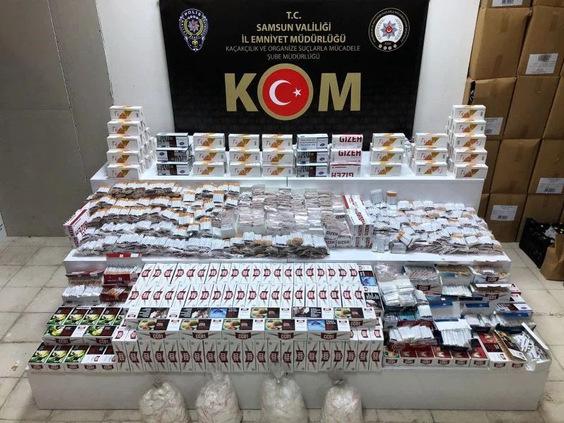 Samsun’da kaçakçılık polisi tarafından düzenlenen operasyonda çok sayıda kaçak tütün ve makaron ele geçirildi.