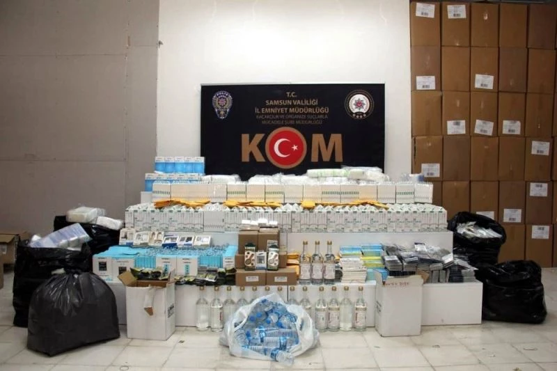 Samsun’da polis tarafından düzenlenen operasyonda kaçak ve sahte alkol malzemeleri ile kaçak ürünler ele geçirilirken, olayla ilgili 7 kişi gözaltına alındı.
