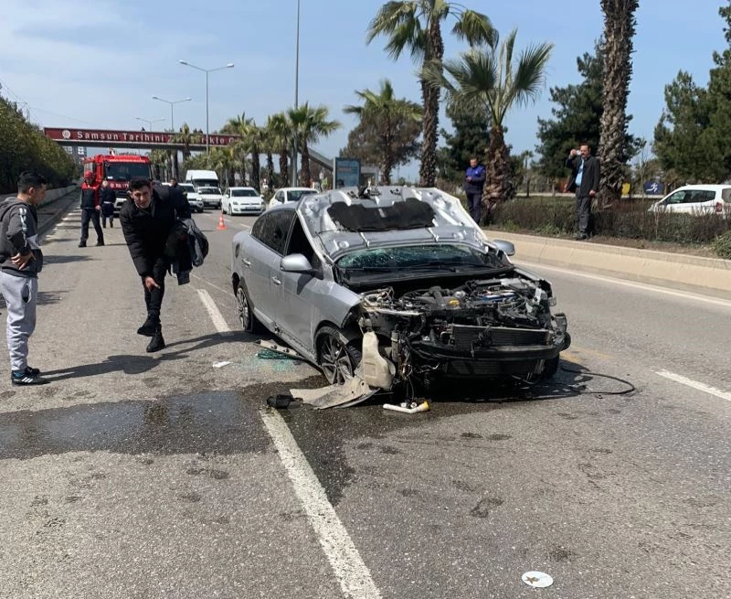 Kaza, İlkadım ilçesi Atatürk Bulvarı üzerinde Baruthane mevkisinde meydana geldi. Atakum istikametinden şehir merkezine seyreden içinde yolcularında bulunduğu dolmuş minibüse 35 AAJ 734 plakalı bir otomobil çarptı. Kaza maddi hasarla atlatıldı. Dolmuş minibüs ve otomobil kaza sonrası çekici vasıtasıyla kaldırıldı.