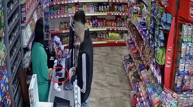 Olay, Samsun’un İlkadım ilçesi Yaşardoğu Mahallesi’ndeki Mehmet Yeşer’e ait markette meydana geldi. Edinilen bilgiye göre, markete müşteri olarak gelen kimliği belirsiz bir genç kasiyerden sigara istedi. Kasiyer arkasındaki reyondan sigara almak için hamle yaptığı sırada kimliği belirsiz genç markete ait içinde 2 bin müşterinin telefon kayıtları bulunan cep telefonunu alıp pantolonunun arka cebine koydu. Sigaranın parasını ödeyen genç çaldığı telefonla birlikte marketten ayrıldı. Markete ait müşterilerin arayıp sipariş verdiği cep telefonunun kayıp olduğunun fark edilmesi üzerine işyerinin güvenlik kamerası kayıtları incelendi. Yapılan incelemede hırsızlık olayının saniye saniye güvenlik kamerası tarafından kaydedildiği ortaya çıktı.