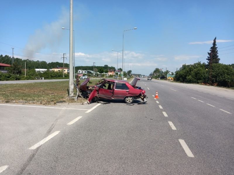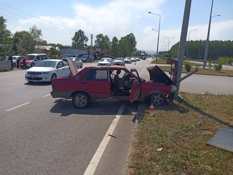 Samsun’da otomobil aydınlatma direğine çarptı: 3 yaralı