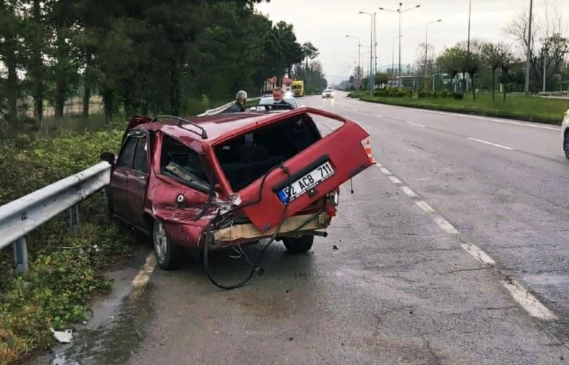 Kaza, Samsun’un Terme ilçesi Samsun-Ordu karayolu 76. kilometresi Sakarlı mevkisinde sabah saatlerinde meydana geldi. Edinilen bilgiye göre, Ahmet T. idaresindeki 52 ACB 711 plakalı otomobil yağmurdan zeminin ıslanması nedeniyle direksiyon hakimiyetinin kaybedilmesi sonucu yolun sağındaki demir bariyerlere çarptı. Kazada, İzzet T.(30) ile Gaye T.(23) yaralandı. Yaralılar, 112 ekipleri tarafından ambulansla Terme Devlet Hastanesi’ne kaldırılarak tedavi altına alındı.
